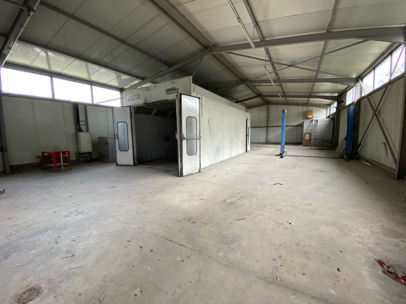 un hangar de 220.57m², une cabine de peinture de 42.37m², un local stockage peinture de 11.43m², une partie technique de 7.87m², un vestiaire de 7.78m² et un wc de 5.97m², à l'arrière du dépot un container de stockage.